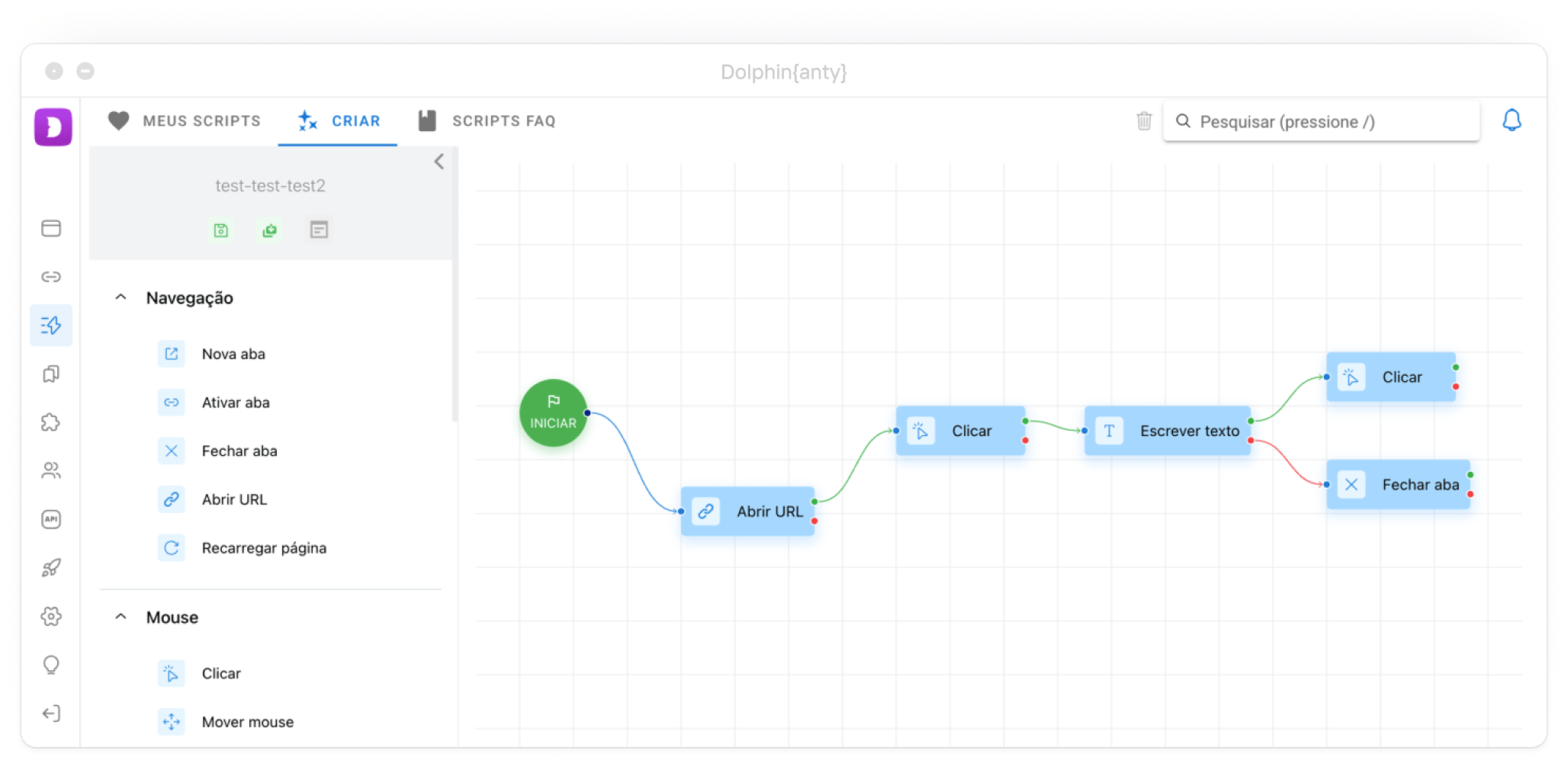 Crie cenários de navegador