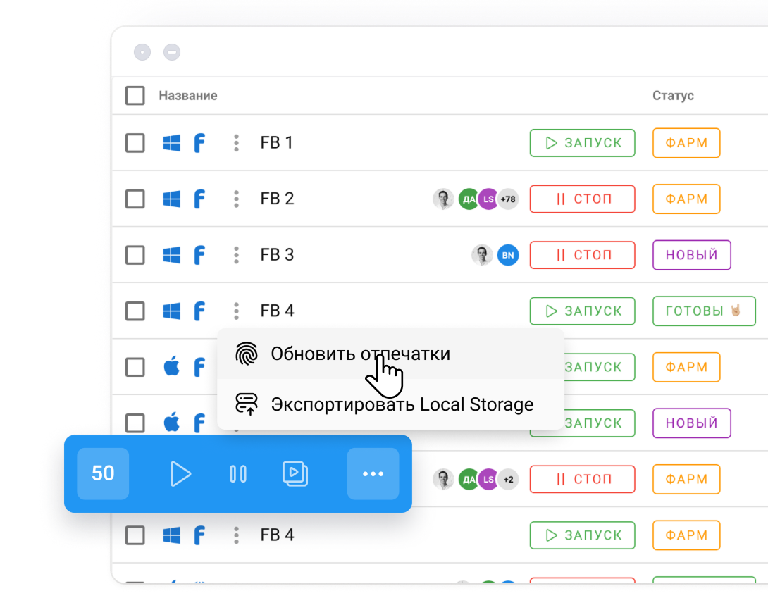 Больше никаких утомительных обновлений по одному. Выберите любые профили — хоть все сразу — и обновите всё мгновенно!