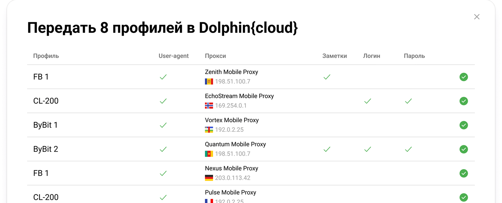 Передача профилей в Dolphin{cloud} работает под капотом!